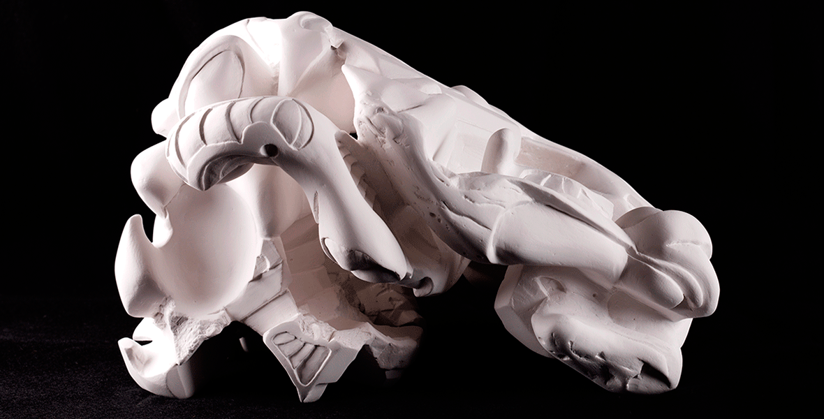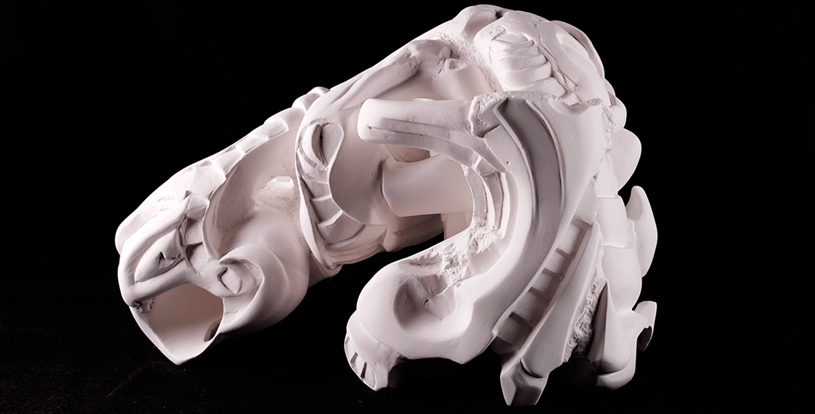 Abstract Sculpture: An interlocking two-piece plaster sculpture inspired by the work of H. R. Giger.
